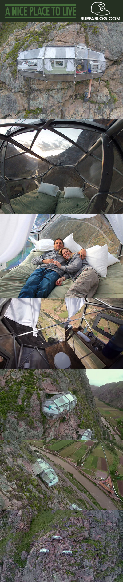 Eccovi Nature Vive, l’hotel con tre camere da letto, sospese a 122 metri d’altezza sulla Valle Sacra in Perù. Le capsule sono in alluminio aerospaziale resistente agli agenti atmosferici. Prezzo per una notte: 330 $.