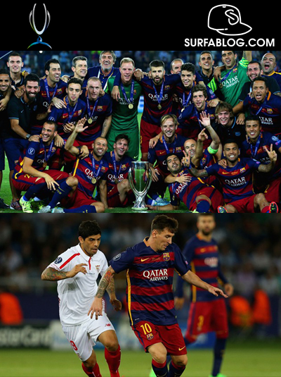 Il Barca ha trionfato per 5 a 4: doppia rete di Messi su punizione, poi il Siviglia ha rimontato da 1 a 4, venendo beffato a 5 minuti dal termine con la rete di Pedro (Banega 3’ (Siviglia), Messi 7’ (Barcellona), Messi 16’ (Barcellona), Rafinha 44’ (Barcellona), Suarez 52’ (Barcellona), Reyes 57’ (Siviglia), Gameiro 72’ (Siviglia), Konoplyanka 81’ (Siviglia), Pedro 115’ (Barcellona)). Con questa vittoria il Barcellona ha eguagliato il record del Milan di massime vittorie della Supercoppa UEFA.
