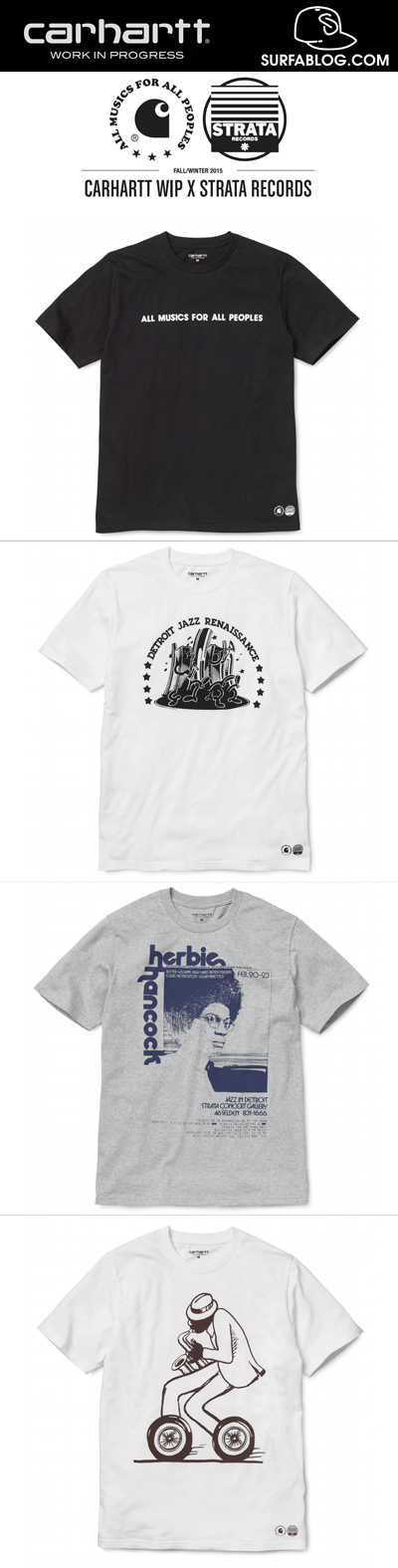 In ordine: S/S Musics T-Shirt (con lo slogan del 1974 della Strata), S/S Jazz Renaissance T-Shirt (il progetto iniziato nel 1970), S/S Herbie Hancock T-Shirt (dedicato al concerto di Herbie Hancock del 1973), S/S Jazz Artist T-Shirt (con il poster della data del 1979 al Power Centre).