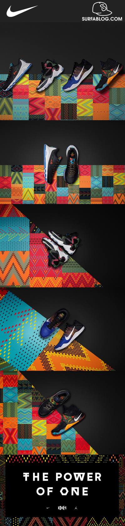 Quest’anno la collezione è composta da 28 pezzi in edizione limitata, divisi in diverse categorie: tennis, basket, calcio, running, Nike iD e Jordan Brand. I colori ed i motivi geometrici richiamano la cultura e la tradizione dell’Africa nel mondo. Le prime edizioni principali che usciranno sono le 4 signature di Nike Basketball: LeBron 13, KD 8, Kyrie 2 e Kobe 11.