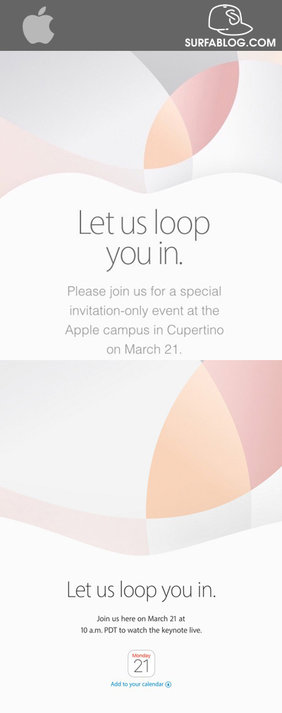 Il prossimo 21 Marzo infatti la casa di Cupertino svelerà il nuovo iPhone ed il nuovo iPad, che rispettivamente dovrebbero chiamarsi iPhone SE ed iPad Pro. Oltre a queste presentazioni, Apple dovrà motivare la sua opposizione alle richieste dell’FBI, durante la vicenda dello smartphone degli attentatori di San Bernardino.