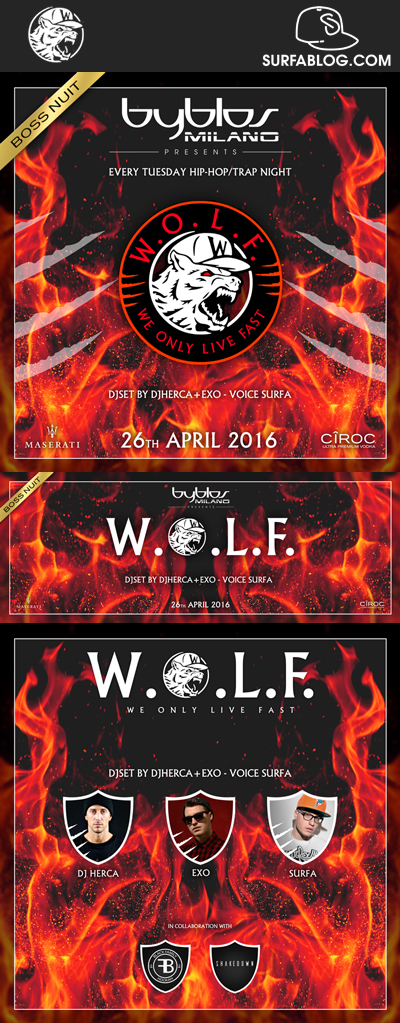STANOTTE “W.O.L.F.” HERCA + EXO DJ SET & SURFA ON THE MIC @ BYBLOS (MILANO)