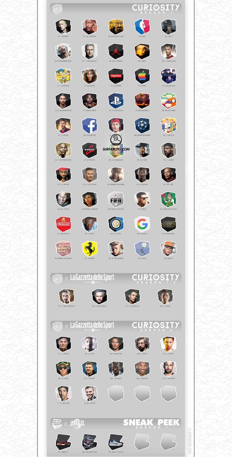 STORE: è la pagine che include tutti gli oggetti di Surfa messi in vendita o che saranno commercializzati. Ogni icona rappresenta un item acquistabile e cliccandoci si accede allo store del prodotto in questione.