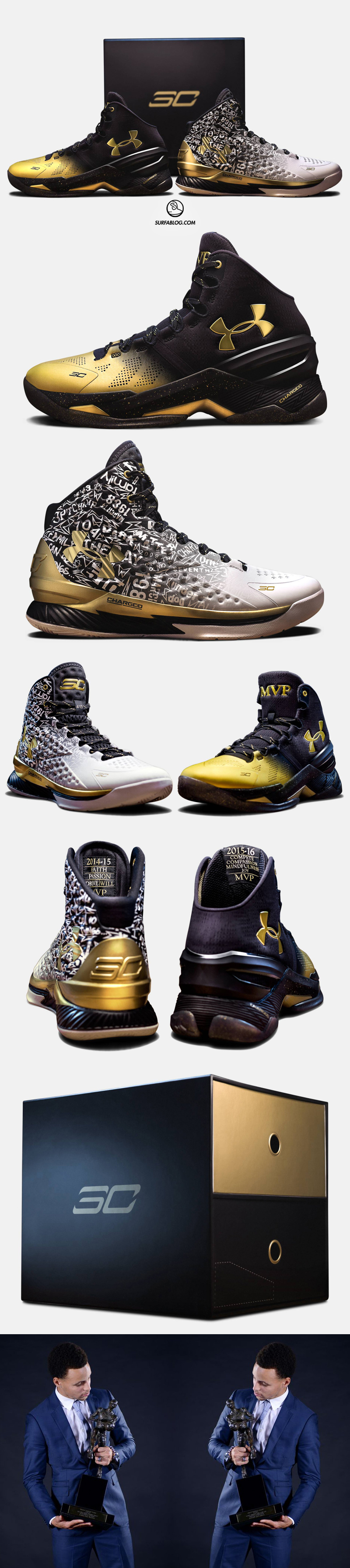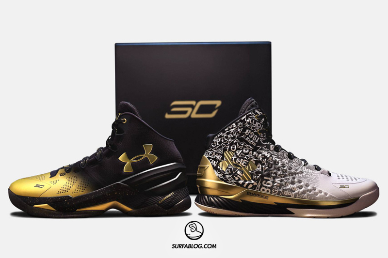 Essendo il secondo anno consecutivo che la guarda dei Warriors porta a casa questo premio, il brand ha utilizzato sia la Curry One che la Curry Two. Entrambi i modelli sono uniti dalla colorazione oro e nera. Il pack sarà in vendita dal 26 Giugno.