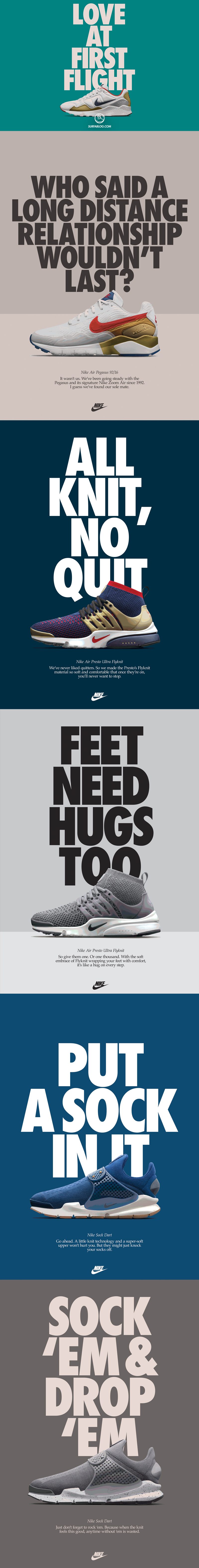 Partendo dalle sneakers, la collezione maschile e quella femminile sono caratterizzate dalla nuova Nike Air Presto Ultra Flyknit, da Nike Sock Dart e reintroducono la Nike Air Zoom Pegasus ’92.