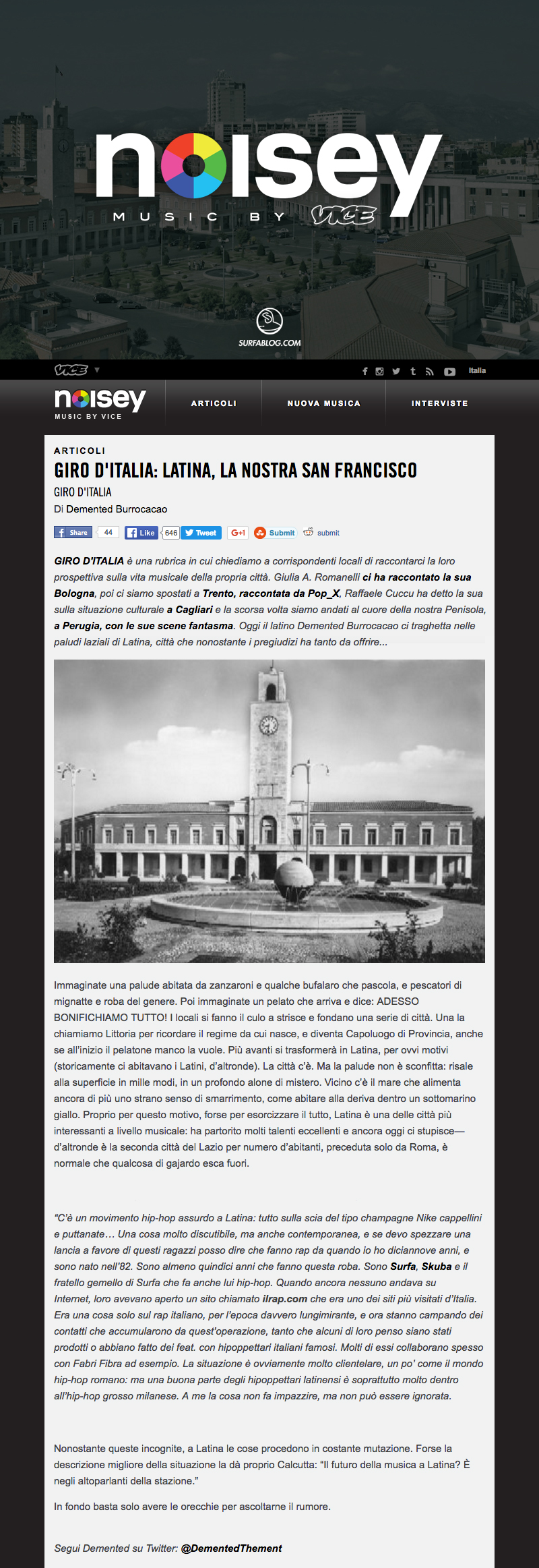 Nell’articolo si parla delle varie realtà musicali pontine, che negli anni si sono fatte valere in territorio nazionale. Nell’ambito Hip-Hop siamo stati citati io ed Exo, per quello che abbiamo fatto in tutti questi anni.