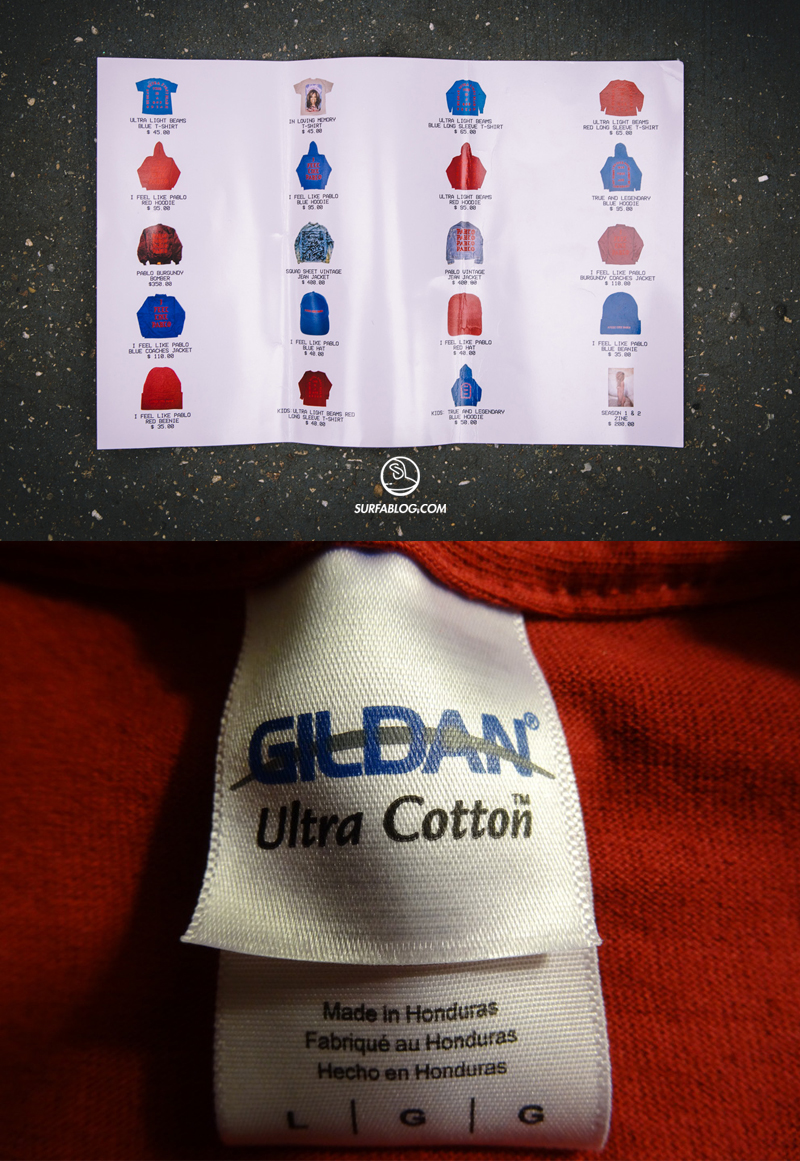 In passato vi avevo già parlato che con l’invasione dei prodotti di “Life of Pablo” sul web, in molti avevano notato di essere materiale Gildan (con tanto di etichetta del noto marchio di abiti senza logo) con il font di Cali Thornhill DeWitt stampato (per saperne di più clicca qui e clicca qui).