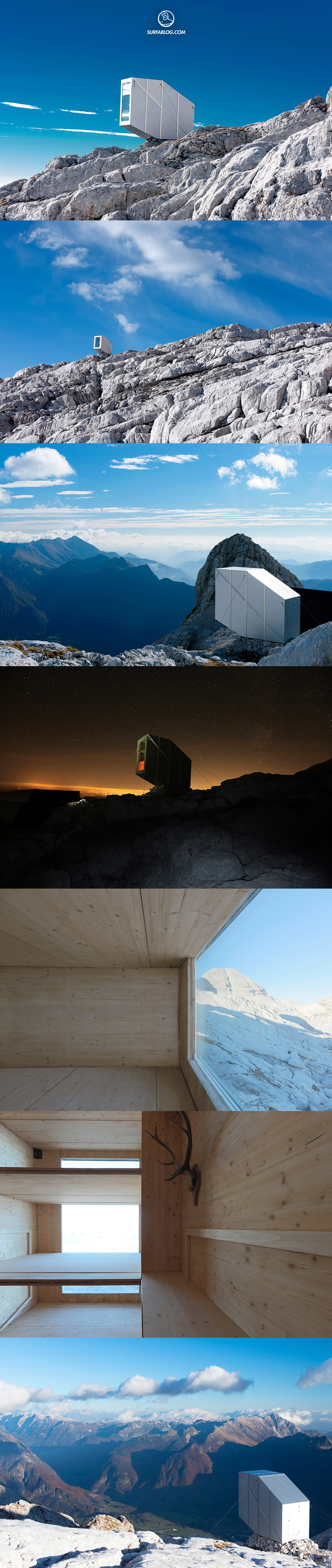 Lo studio l’ha chiamata “Kanin Winter Cabin” a causa della sua posizione sul Monte Kanin. La cabina è accessibile solo attraverso una salita o in elicottero.