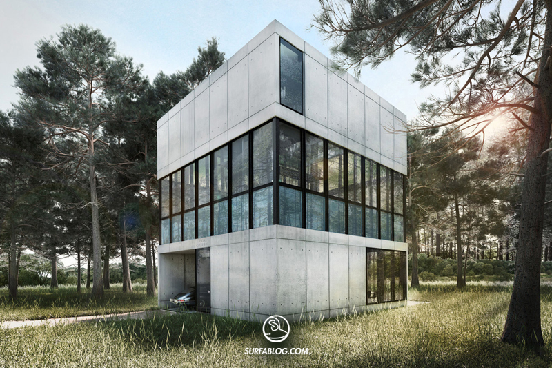 La casa si sviluppa per 200 metri quadrati, su tre piani, il secondo dei quali è una piscina indoor. L’abitazione ha una forma cubica ed è costruita principalmente in vetro, in acciaio e in cemento.