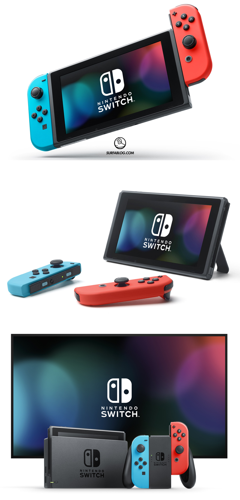 La novità è che non sarà un sistema di gioco legato esclusivamente alla TV del salotto, ma permette di giocare dove, quando e con chi vuoi. Switch è disponibile in due colori: una versione con un set di controller Joy-Con grigi ed una con un Joy-Con neon blu ed uno neon rosso.