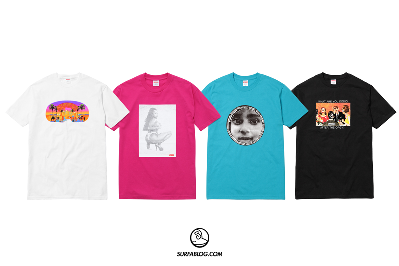 Le tees sono disponibili da oggi negli store e sul sito Supreme.