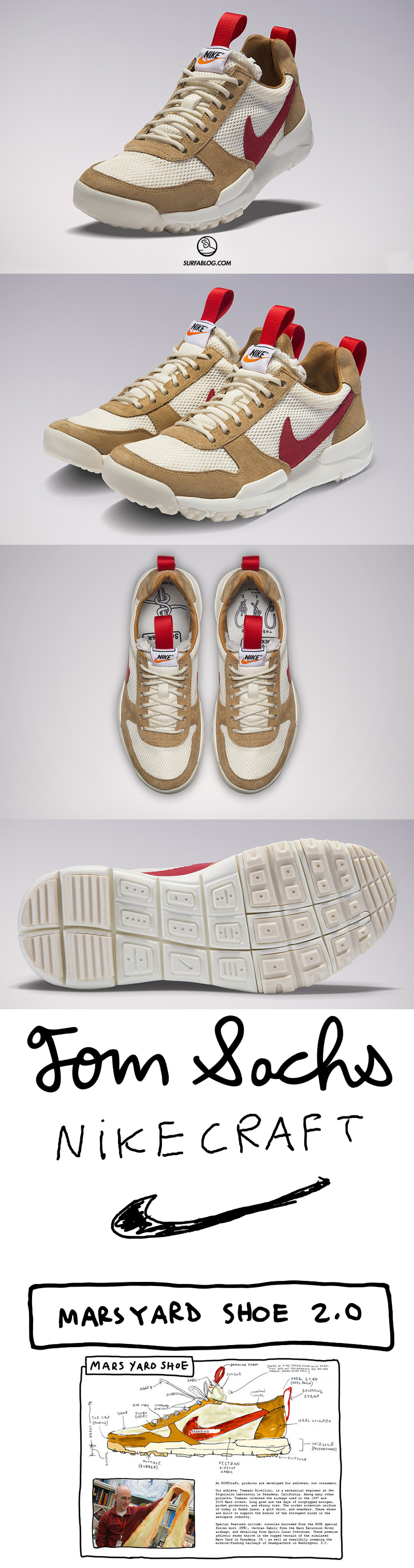 La scarpa è stata realizzata per Tommaso Rivellini, l’inventore degli airbag usati nelle Mars Rover, ovvero i veicoli inviati su Marte. A poco più di cinque anni di distanza il brand oggi ha messo in commercio la “NikeCraft Mars Yard 2.0”, la stessa sneaker, in edizione super limitata, con qualche piccola modifica.
