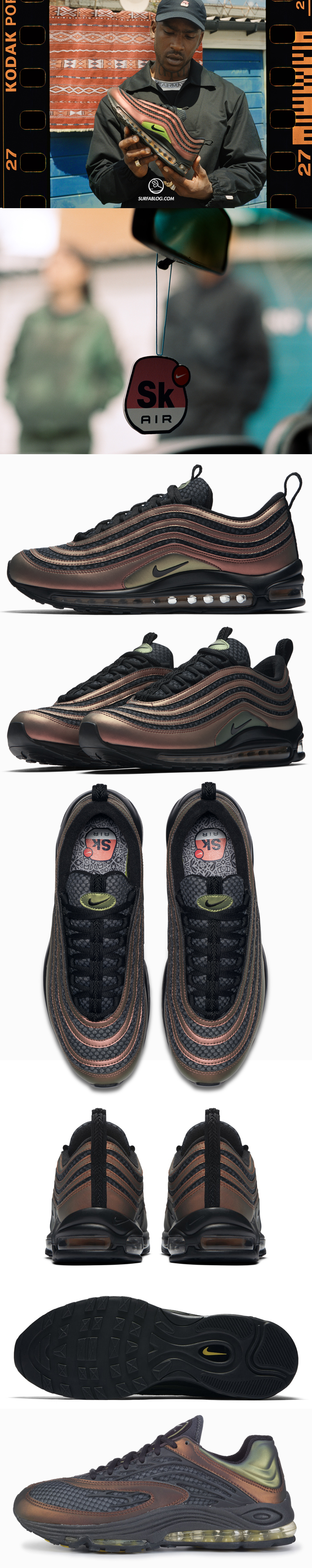 La Air Max 97 SK prende spunto dalla Air Tuned Max del 1999 (nell’ultima foto del post), che è stata la prima sneaker che il rapper ha acquistato, mettendo i soldi da parte.