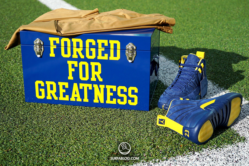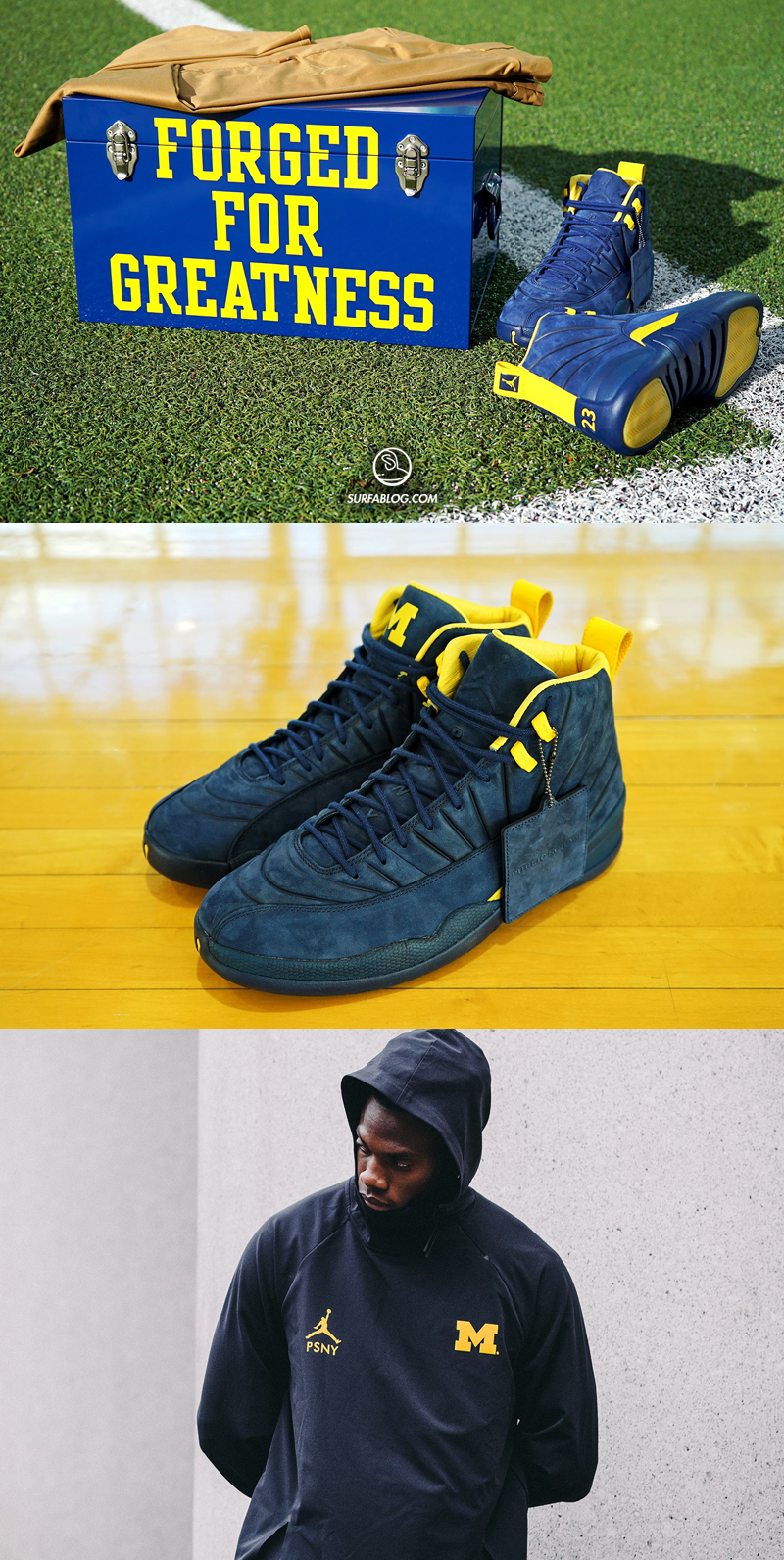 L’Università del Michigan ha unito le forze con Public School ed il marchio di MJ per celebrare il 150esimo anniversario dell’ateneo e per l’occasione è stata realizzata una collezione in cui i colori principali sono il blu ed il giallo. Ovviamente la sneaker, essendoci di mezzo PSNY, non poteva che essere la Air Jordan 12, realizzata con tonalità tipiche dell’Università.