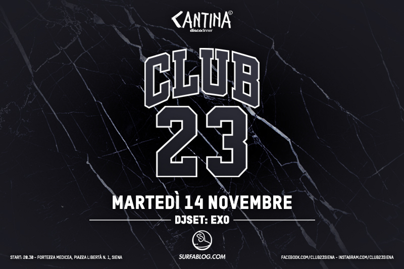 Alla sesta stagione, il party con Exo in console, si sposta all’interno della Fortezza Medicea nella prima enoteca in assoluto (since 1933). Per l’occasione l’evento inizierà alle 20.30 con un’apericena caratterizzata e contraddistinta come il migliore della città. Dalle 22.30 comincerà il Club 23.