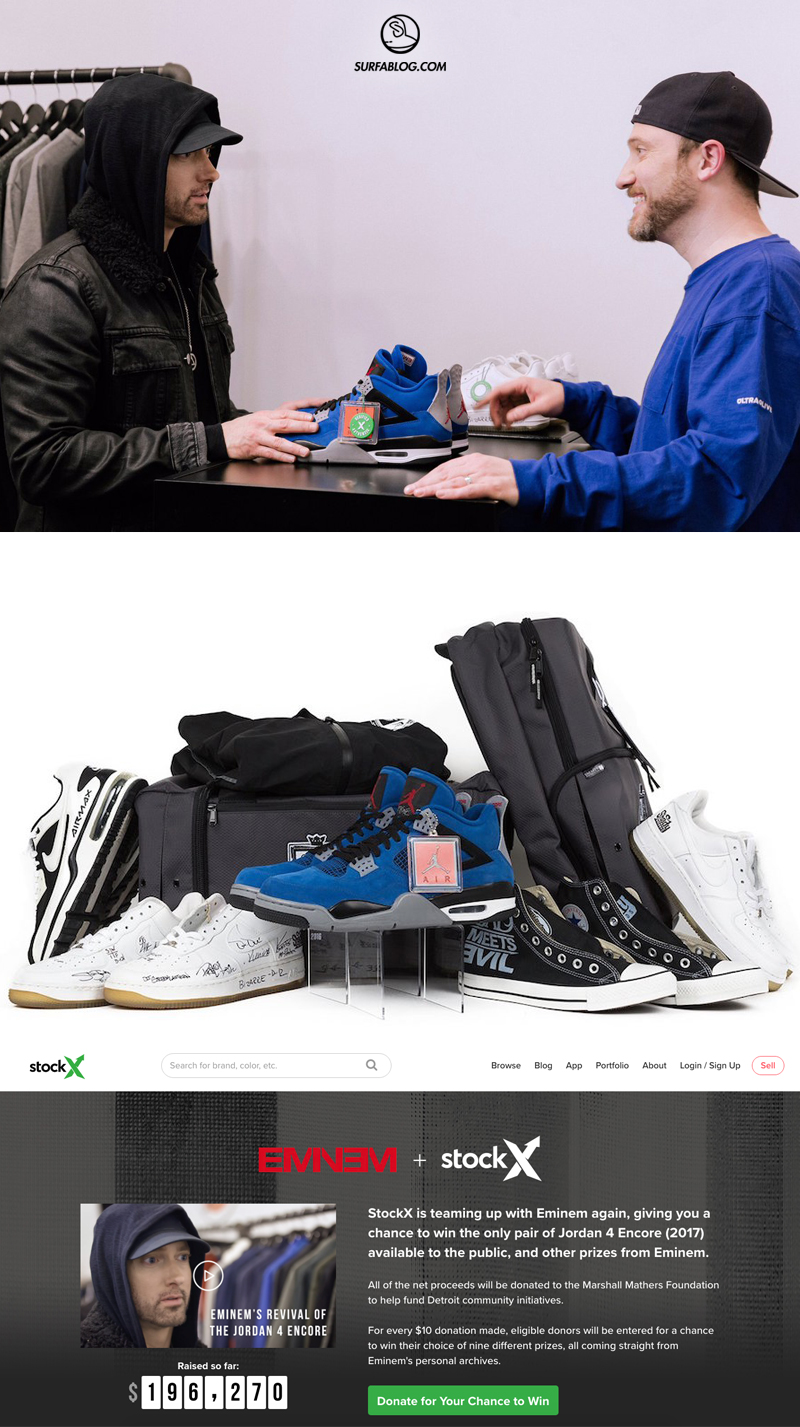 A proposito della Air Jordan 4 “Encore” (per saperne di più clicca qui), di cui 9 paia sono state messe in palio su StockX, la raffle è terminata stamattina alle 10.00. Ogni persona poteva effettuare un’offerta standard di 10 $. I ricavati sono stati donati alla Marshall Mathers Foundation che li utilizzerà per dar vita ad una serie di attività benefiche a Detroit. Essendo passati 12 anni dalla prima release, l’unica taglia disponibile per questa nuova scarpa era la 12 US.