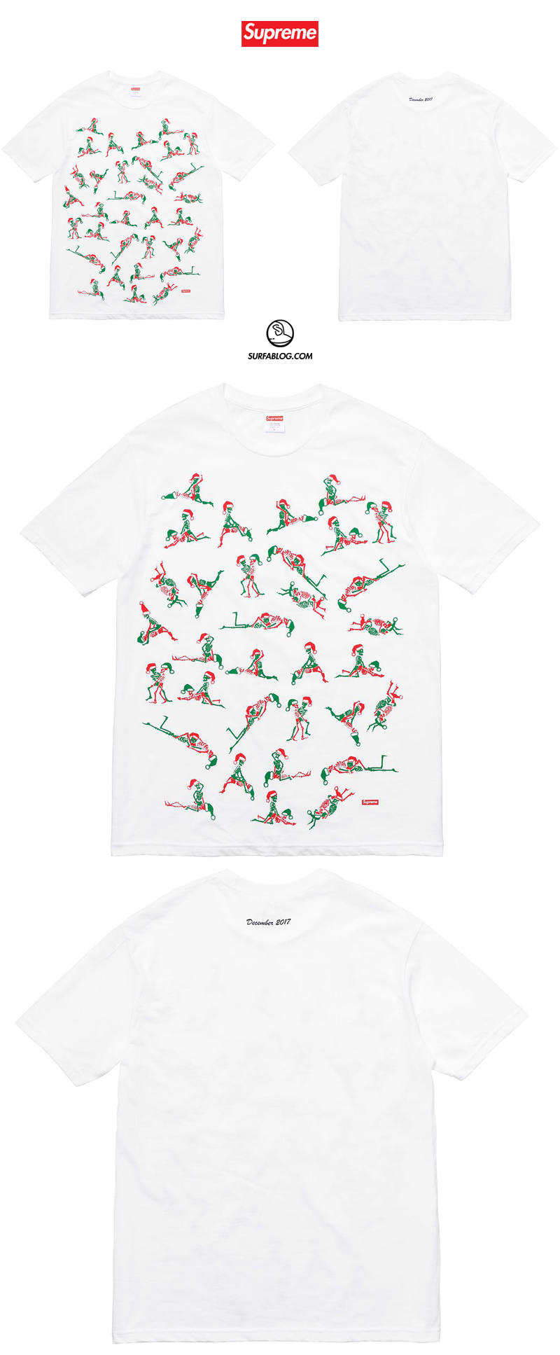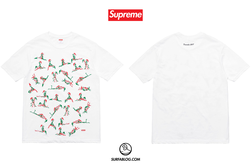 La maglia natalizia del brand di New York è composta da scheletri che si accoppiano in mille posizioni con il cappello di Babbo Natale. La t-shirt è stata lanciata il 12 Dicembre al prezzo di 36 $.