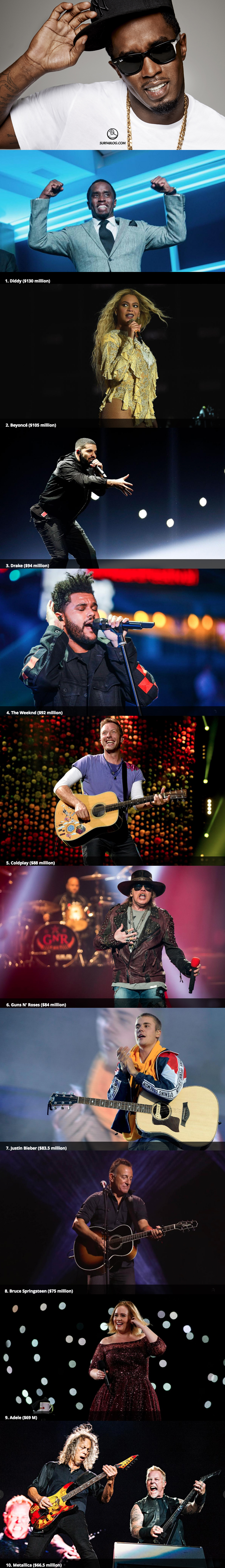 Al primo troviamo Diddy che nel 2017 ha guadagnato la bellezza di 130 milioni di $. Qui di seguito la top 10: