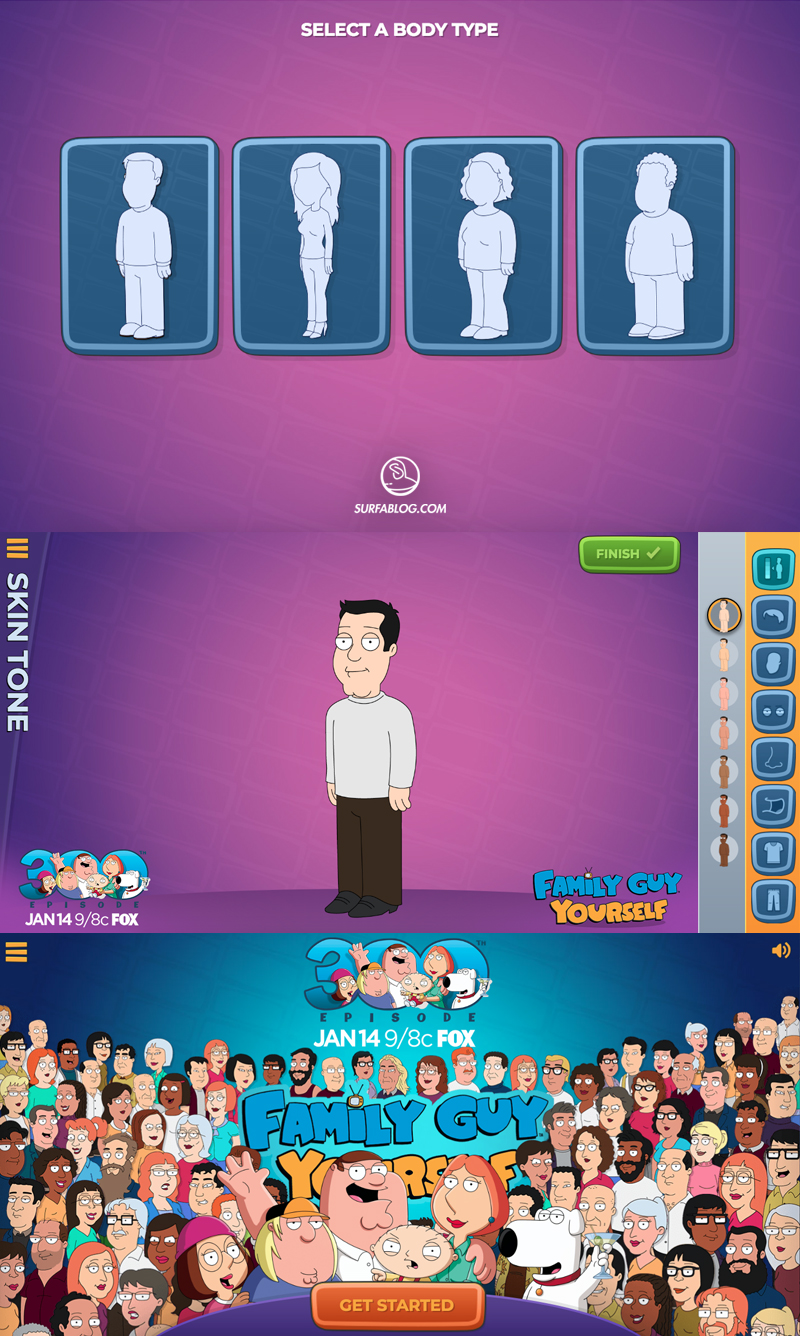 Chiamato “Family Guy Yourself”, il sito consente di personalizzare un alter-ego, scegliendo il colore della pelle, il tipo di capelli, la fisionomia del viso, gli occhi, il naso, la bocca ed i vestiti.
