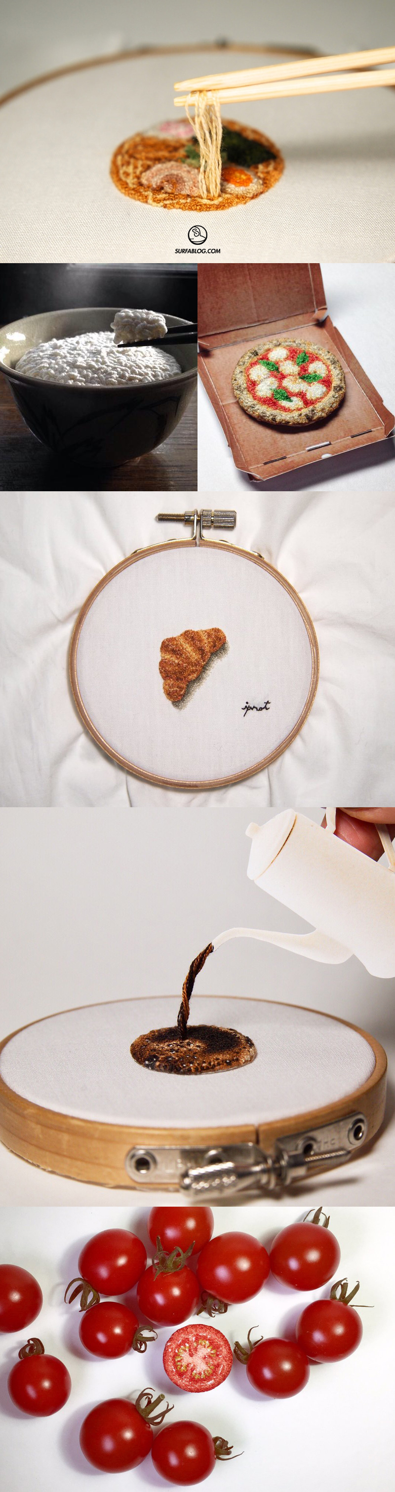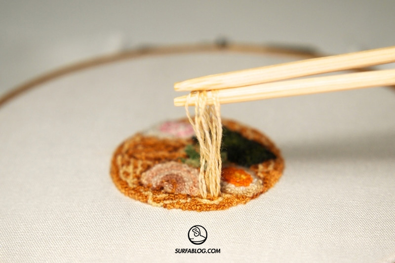 è un artista giapponese che usa l’ago ed il filo al posto del pennello.