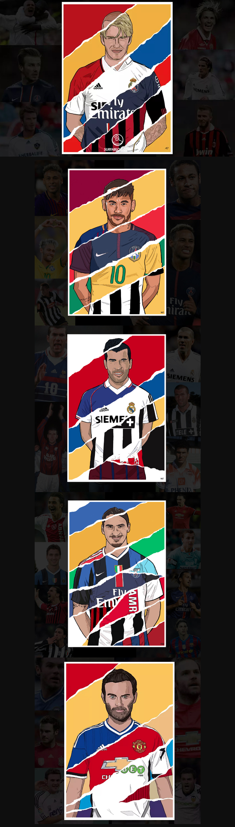 Da questi due elementi, Mark ha dato vita alla collezione “Carreer in Shirts”, in cui riprende alcuni campioni con indosso tutte le maglie indossate in carriera. In ordine: David Beckham, Neymar Jr, Zidane, Ibrahimovic, Mata.