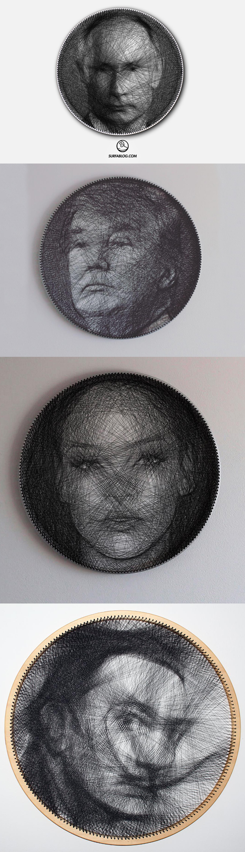 Saso Krajnc aka Cvern è l’artista sloveno che per dipingere ritratti, non usa il pennello, ma un semplice lungo filo per cucire.