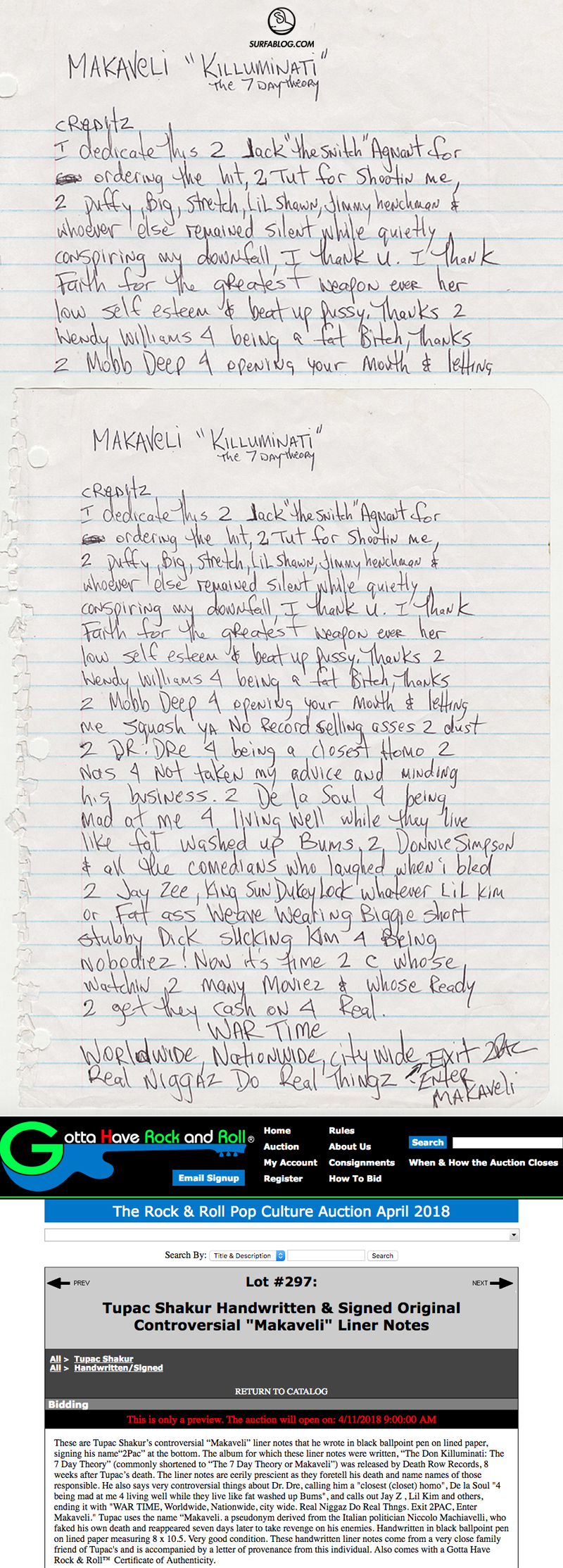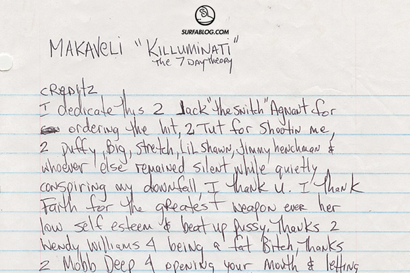 Nella nota scritta a mano, il rapper ha attaccato Haitian Jack e King Tut dello studio Quad Recordings, ha accusato Puff Daddy e The Notorious B.I.G. di aver cospirato per la sua rovina, ha affermato che i Mobb Deep non vendevano un disco, che Dr. Dre era un omosessuale da studio di registrazione, ed ha ringraziato ironicamente e denigrandoli artisti come: Nas, Lil Kim, Faith Evans, De La Soul e JAY-Z. Del manoscritto, solo una piccola parte è stata inserita nella stampa dell’album, ovvero la conclusione: