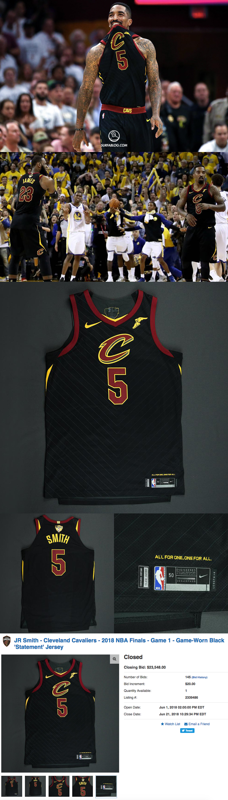 Durante Gara 1 di quest’anno, il giocatore dei Cavs, dopo aver preso un rimbalzo decisivo allo scadere, sul punteggio in parità, invece di passare la palla o di andare a prendersi un fallo o di segnare, ha pensato che la sua squadra fosse in vantaggio ed ha corso nella direzione opposta facendo scadere il tempo di gioco. La partita è quindi proseguita nei supplementari ed i Cavaliers hanno perso l’incontro. JR Smith ha giocato 38 minuti ed ha totalizzato 10 punti, 2 assist e 6 rimbalzi. La maglia indossata in quel match è stata messa in vendita all’asta da NBA e dopo 145 proposte, è stata battuta per 23.548 $.