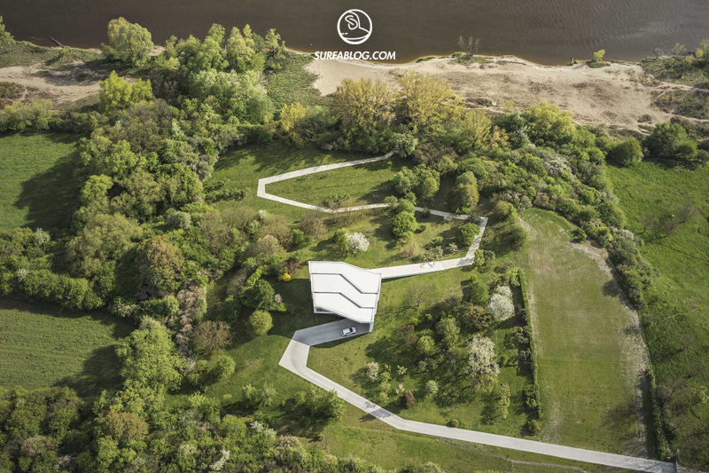 L’entrata dell’abitazione è stata trasformata in una strada e da qui, la sua architettura è stata modellata per fondersi con questo collegamento.