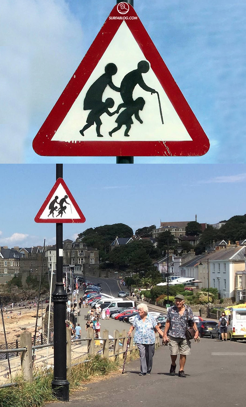 NUOVO GRAFFITO DI BANSKY SU UN CARTELLO STRADALE