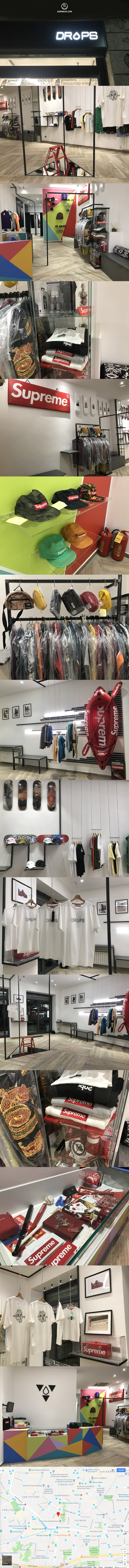 Drops è uno store aperto Mercoledì 11 Ottobre a Milano. Il negozio vende solo due brand, il suo marchio omonimo e Supreme. La struttura è su un piano e dal look minimale.