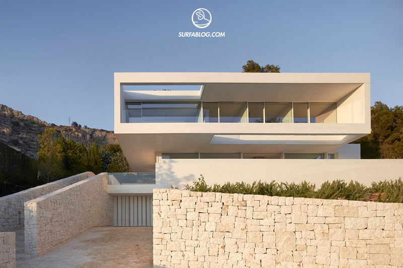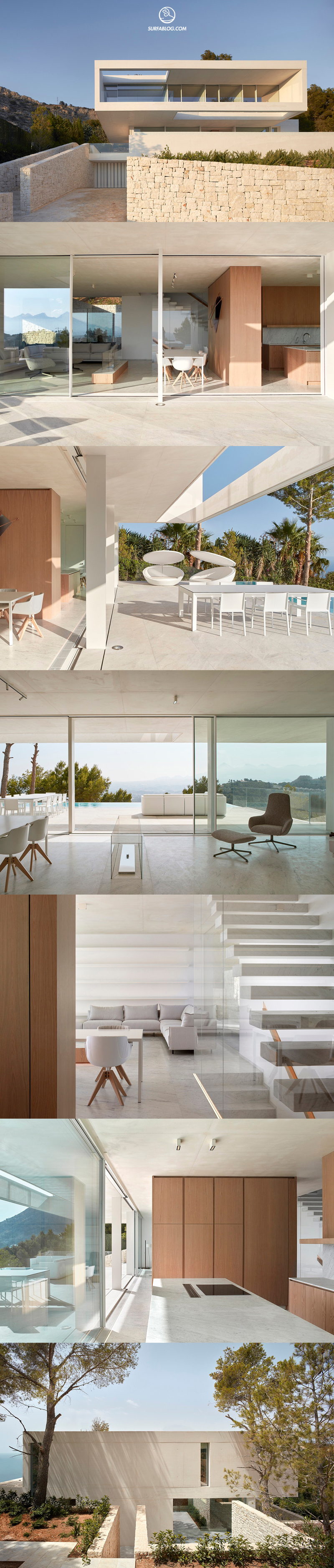 L’abitazione poggia su una montagna che si trova nel mezzo di un’area coperta da pini e da vegetazione. L’esterno utilizza una base in pietra che si collega agli interni, facendoli funzionare all’unisono.