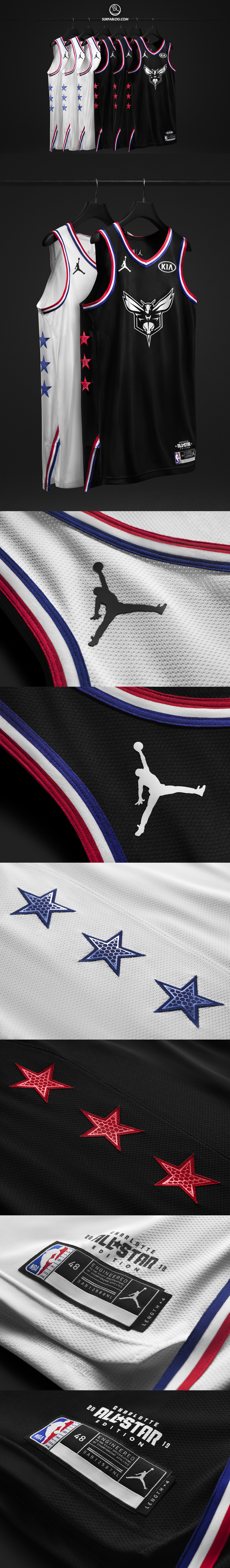 Il design richiama la jersey utilizzata nel 1991, quando Charlotte fu per la prima volta la sede dell’ASG. Per rendere omaggio al team ospitante è stato inserito sui pantaloncini, il motivo del nido d’ape integrato nelle stelle del logo NBA All-Star Game. Le maglie sono disponibili su Nike.Com, mentre le versioni delle riserve lo saranno dal 31 Gennaio.