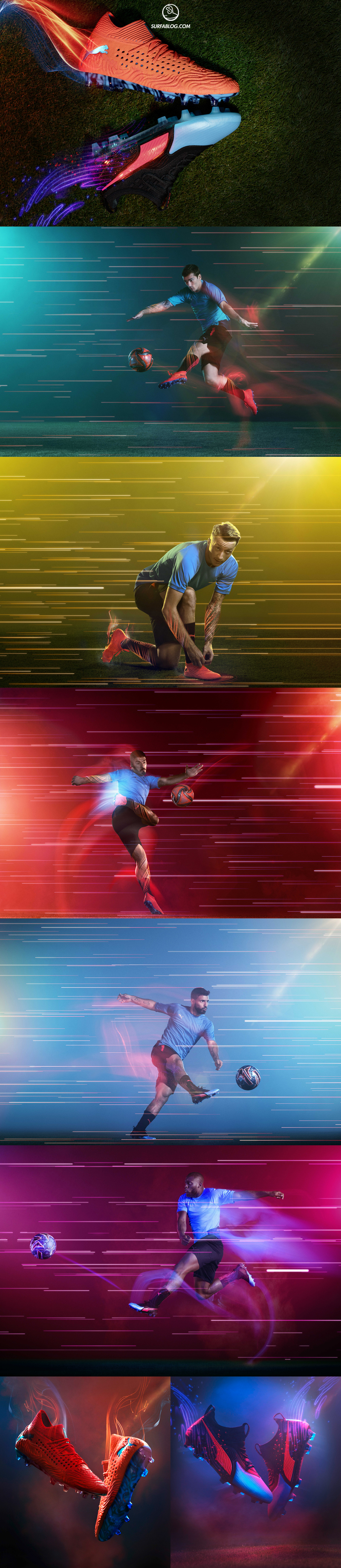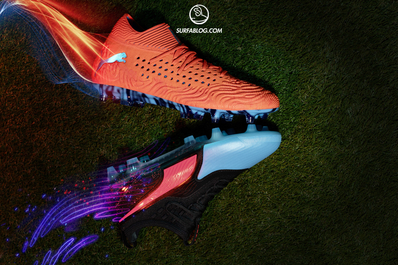 Entrambe le scarpe da calcio FUTURE 19.1 e PUMA ONE 19.1 sono state customizzate con esplosioni di rosso e schizzi di blu tipici del mondo e della cultura dei videogiochi, che ispirano un impeto di energia e creatività.