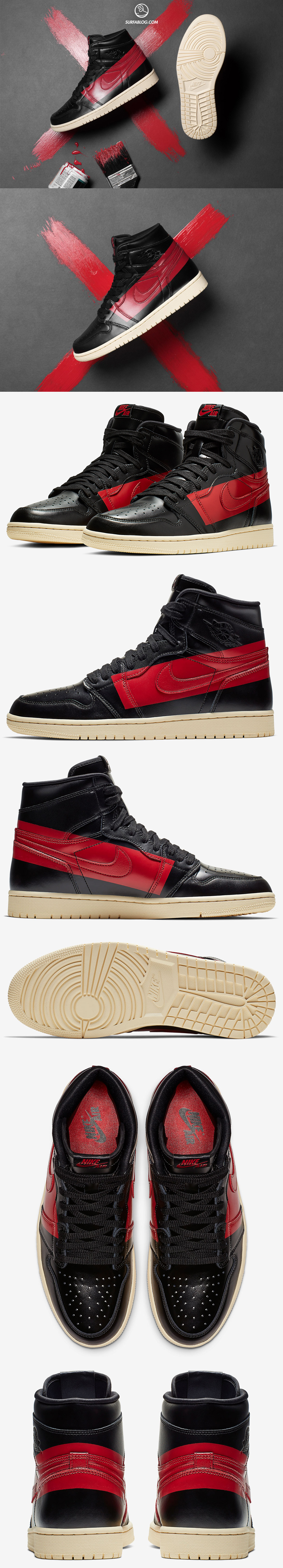 La tomaia è rivestita da pelle nera ed è accentuata da una barra rossa che copre lo