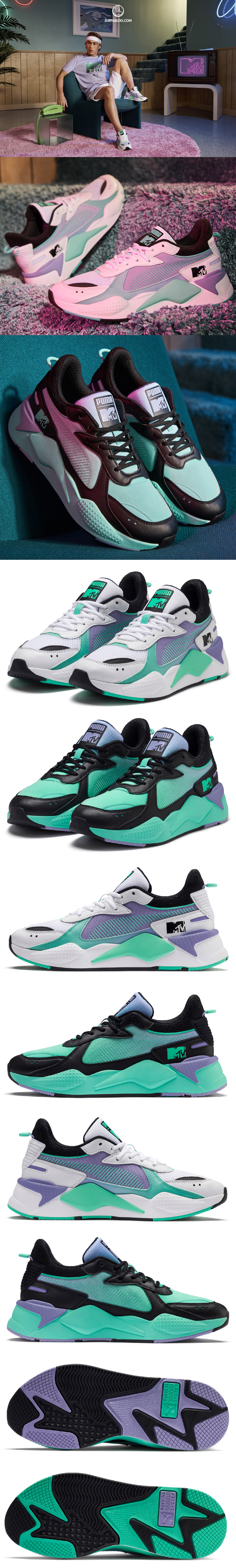 La collaborazione PUMA x MTV dà vita ad una versione inedita della nuova sneaker RS-X Tracks, con tomaia in pelle, tecnologia OG RS nell'intersuola, dettagli all’avanguardia e un’esplosione vivace di neon, disponibile in due varianti: la RS-X Tracks MTV Gradient Blaze (PUMA White - Sweet Lavender) e la RS-X Tracks MTV Gradient Gloom (PUMA Black – Sweet Lavender). Completando il look con un abbigliamento adatto alla stagione, la collezione comprende anche un tee, un tank, una track top e pantaloncini con il logo PUMA x MTV evidenziato.