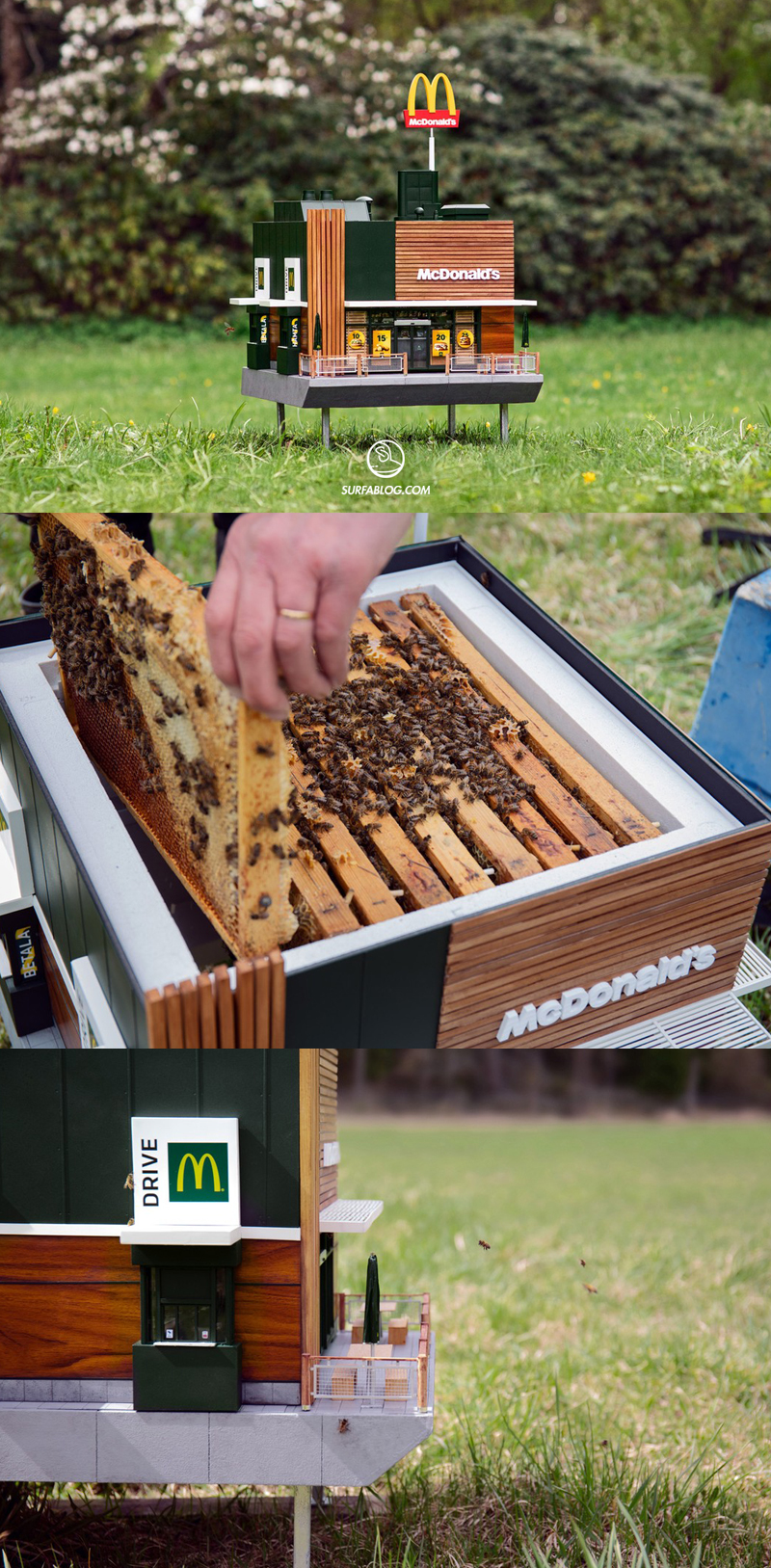 McHive è il McDonald’s più piccolo al mondo ed è in realtà un alveare perfettamente funzionante. L’idea è in risposta ai fast food del MC in Svezia, dove hanno installato degli alveari sui loro tetti.