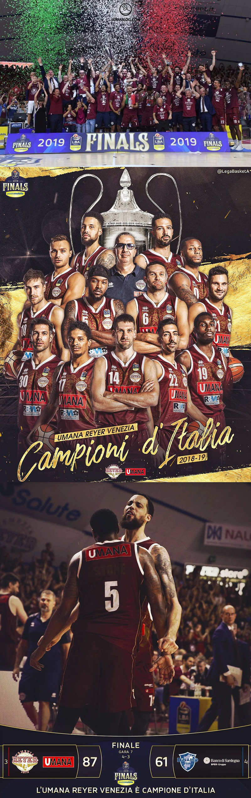 La Reyer vince la serie per 4-3 e conquista il suo quarto scudetto. Austin Daye è stato eletto MVP delle finali.