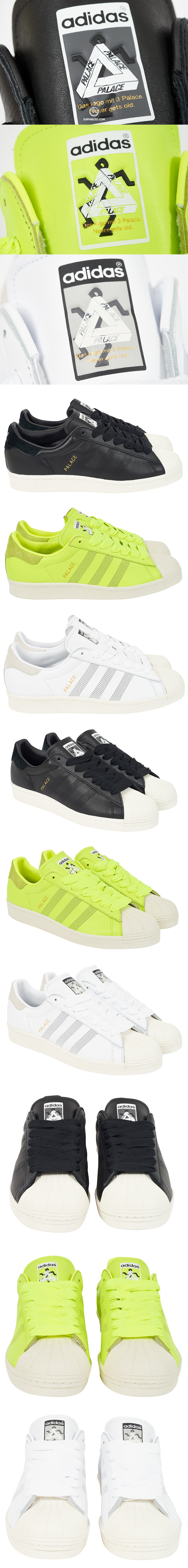 adidas Originals & Palace collaborano per una Superstar riproposta in 3 colorazioni: nera, bianca e gialla fluorescente.