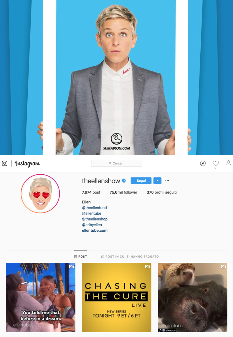 ELLEN DEGENERES E’ LA CELEBRITA’ CON IL MAGGIOR NUMERO DI FOLLOWERS FAKE