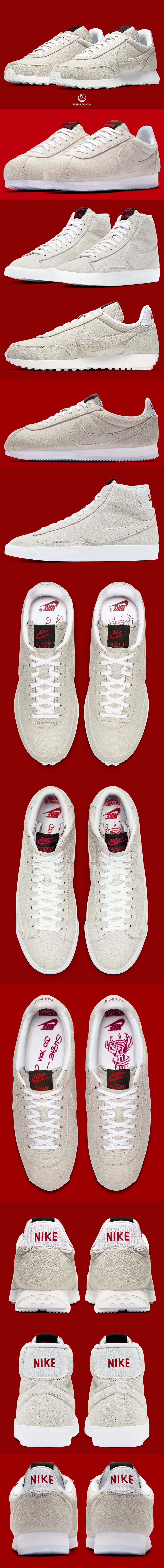 Le sneakers della capsule sono la Blazer Mid, la Tailwind 79 e la Cortez. Le scarpe presentano gli stessi colori, gli stessi caratteri distintivi e la caratteristica di avere dei dettagli sotto la tomaia.