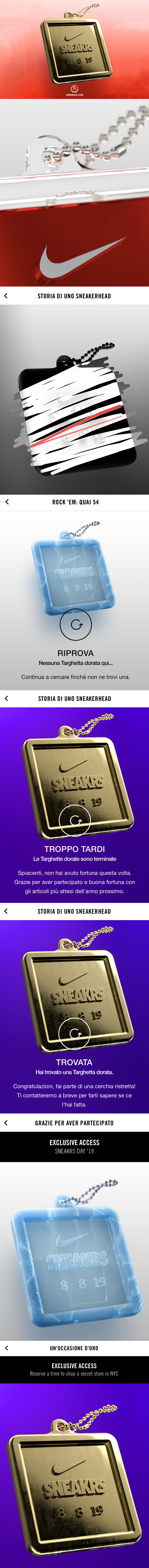 Dopo l’evento dello scorso anno, in molti aspettavano il giorno del secondo compleanno dell’applicazione di Nike. L’evento è iniziato alle 09.00 di ieri e bisognava cercare una targhetta dorata nelle storie o nei post dell’app. Le targhette disponibili erano 14, ma solo 1 era quella giusta e si trovava nel post “Storia di uno sneakerhead”. Una volta individuata la targhetta d’oro si avevano due possibilità: “trovata” o “troppo tardi”. I fortunati che ci erano riusciti, hanno aspettato 12 ore per avere un ultimo responso: targhetta ghiacciata nel caso non si era stati scelti o targhetta oro se era andato tutto a buon fine.