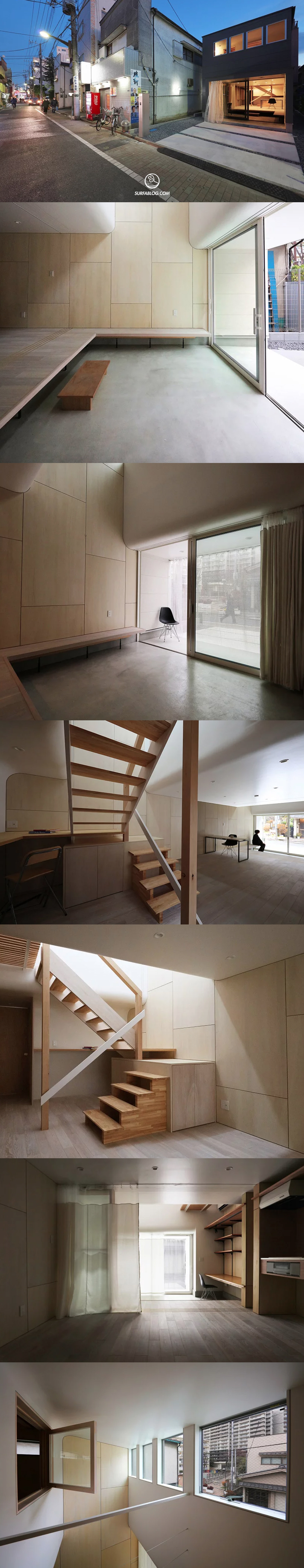La casa ha lo scopo di creare un punto di equilibrio tra vita, lavoro e comunità. E’ un progetto che combina una residenza privata con un bar pubblico. L’abitazione si trova a Sunamachi, una delle strade più famose di Tokyo.