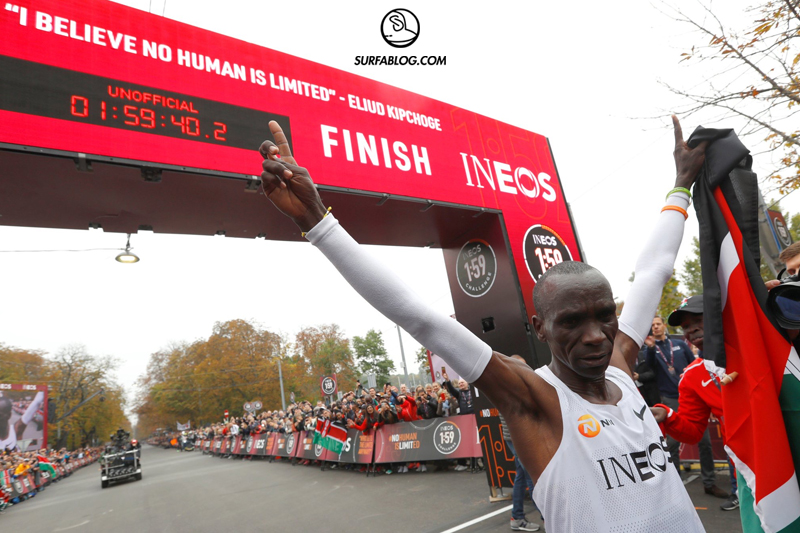 Al 35’ km, Kipchoge era ad 1h39’23’’ ed al 40’ a 1h53’36’’. Il resto è stata una lunga volata verso la storia.