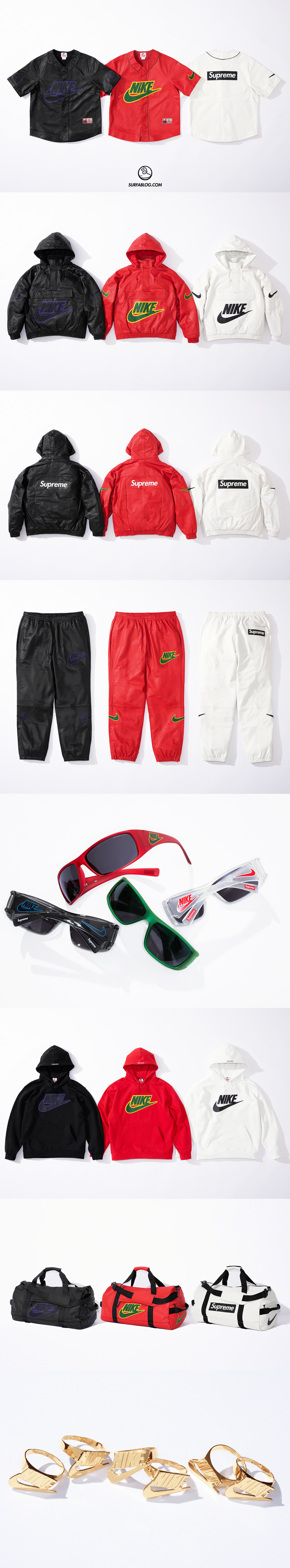 Questo Autunno Supreme ha collaborato con Nike per una collezione composta da giacche, felpe, maglie da baseball, pantaloni, bandane, anelli e borsoni.