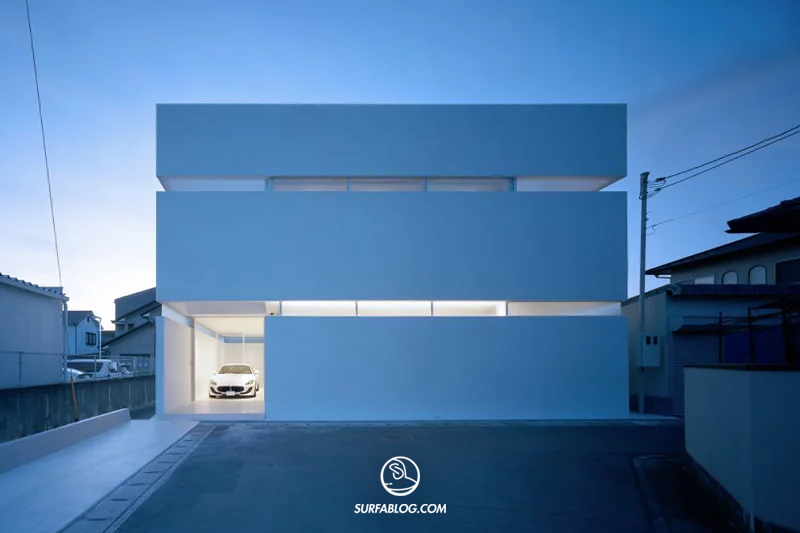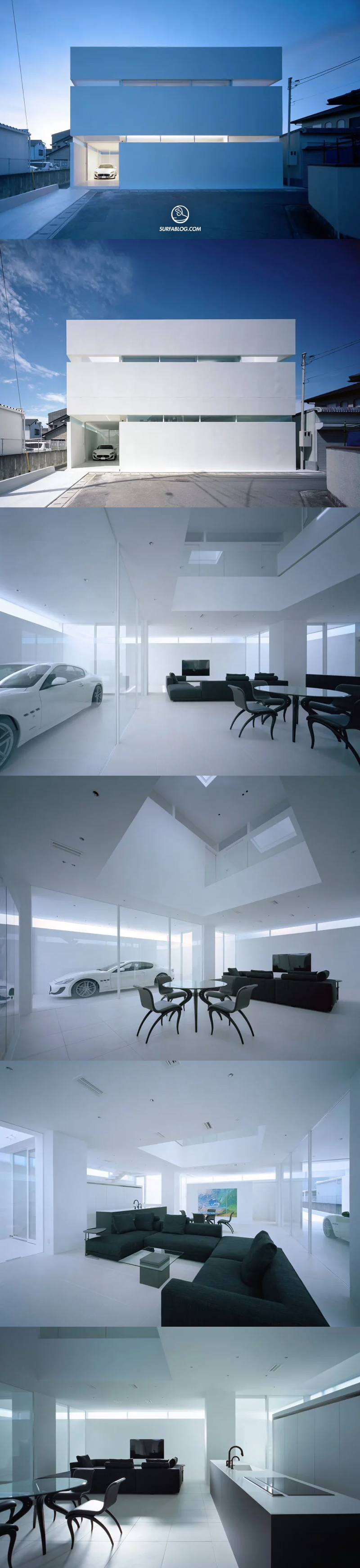 La residenza è caratterizzata da 4 lati esterni che racchiudono completamente la proprietà e da un garage trasparente per mostrare la propria auto come oggetto d’arte.