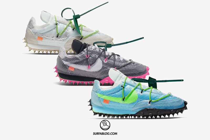 Si tratta della collezione Off-White x Nike Waffle Racers, composta da 3 modelli “Black/Fushsia/White”, “White/Electric Green/Black” e “Vivid Sky/Black/Electric Green”.