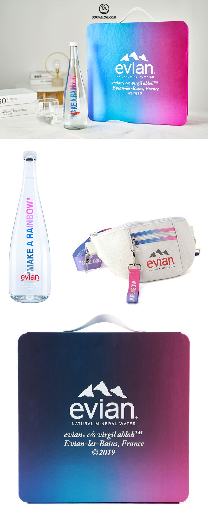 Si tratta di un porta bottiglie, un marsupio ed ovviamente l’acqua “MAKE A RAINBOW”, in vendita in esclusiva preso Barneys in Giappone.