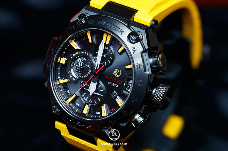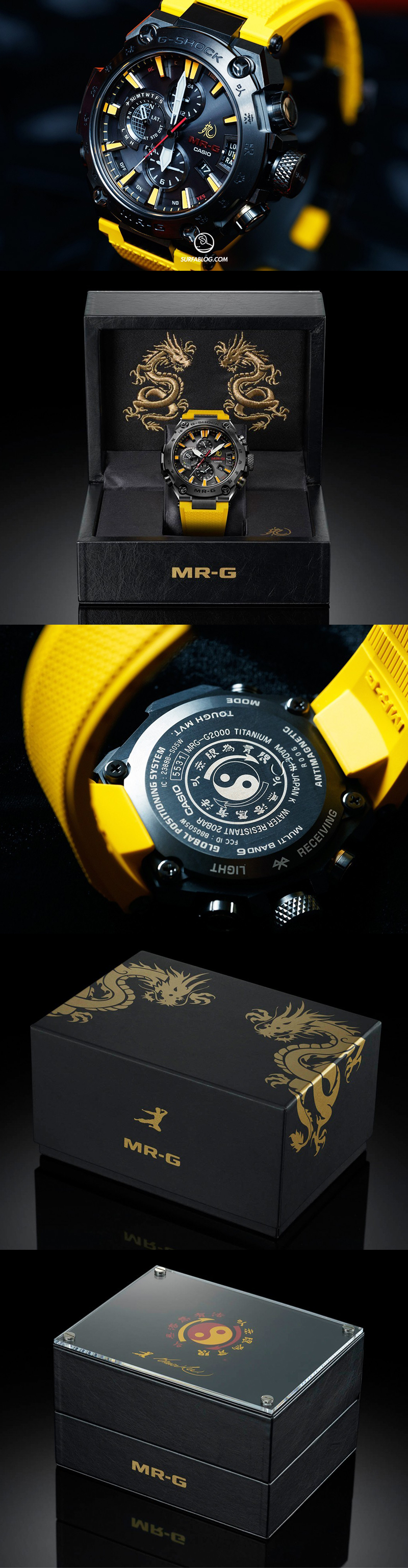 L’orologio è nero e giallo, come l’icona tuta indossata da Lee nel film “Game of Death”. Sul quadrante è presente in rosso il logo Jeet Kune Do, la filosofia marziale inventata da lui ed il logo MR-G.