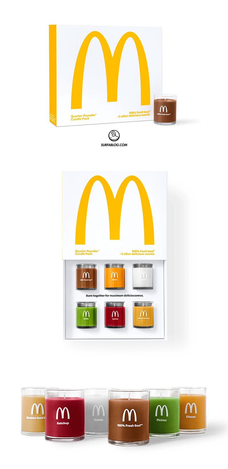 La catena di fast food ha rilasciato 6 candele, ispirate agli ingredienti del “Quarter Punder”, il panino conosciuto in Italia come McRoyal DeLuxe.